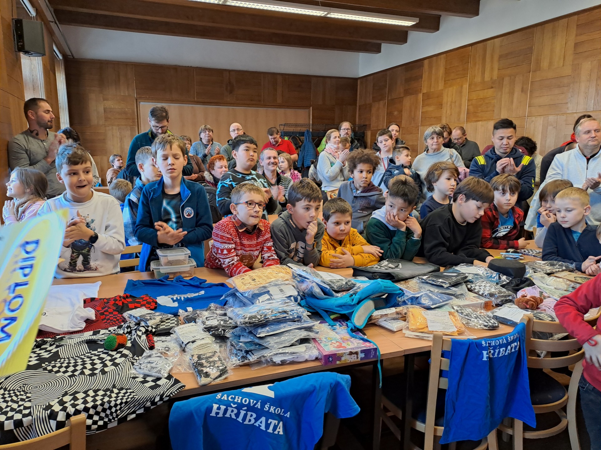 Cenový fond turnaje B. Každé dítě dostalo nějakou hodnotnou cenu. Pohled na ceny: