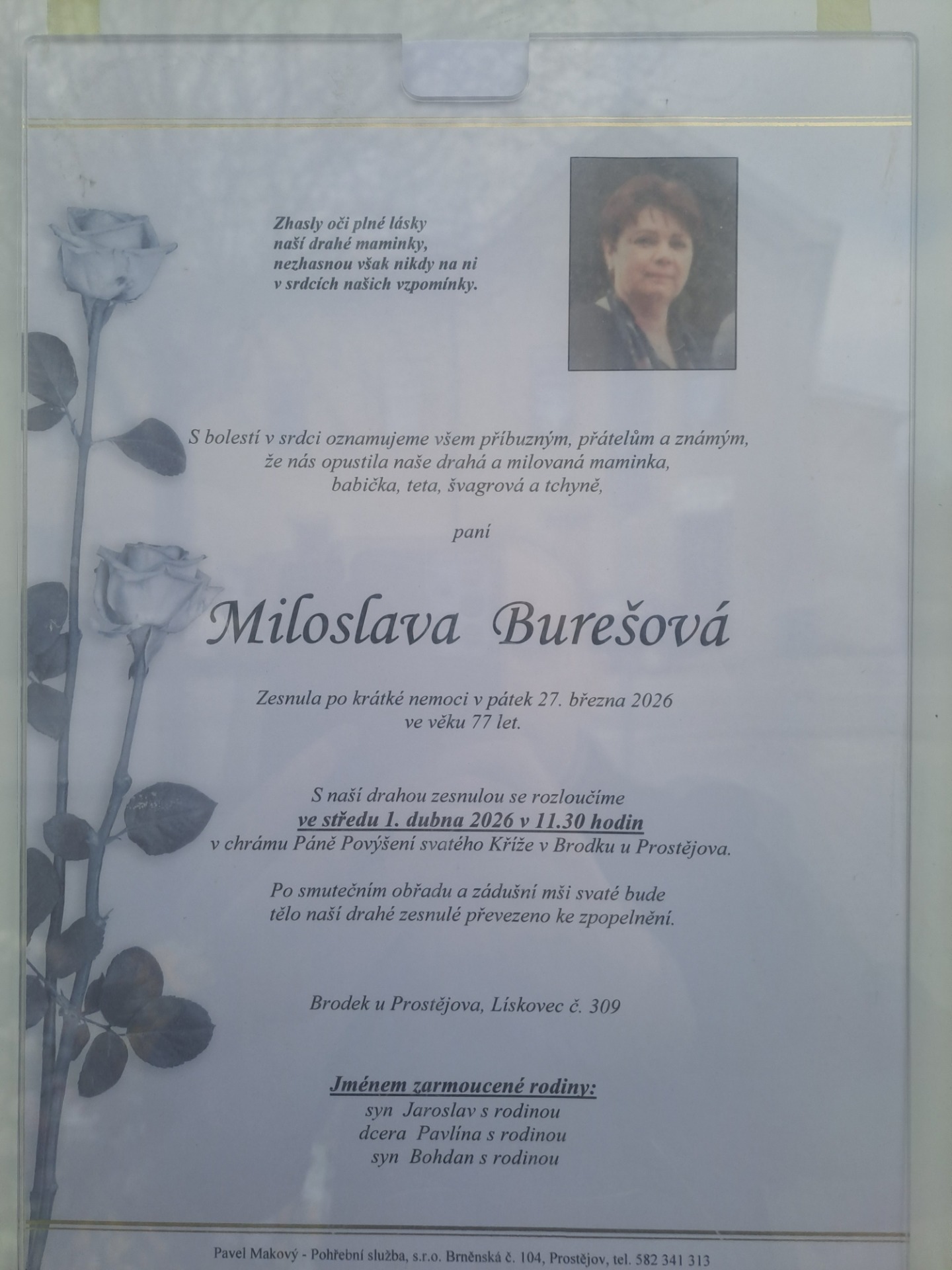 Příprava šachového soustředění tentokrát nebyla dokonalá, protože 27. března 2026 zesnula Miloslava Burešová ( babička Jaroslava Bureše )
